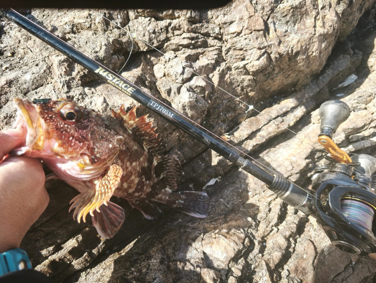その後はお土産狙いで、パックロッドのTPJ705Mでロックフィッシュ、