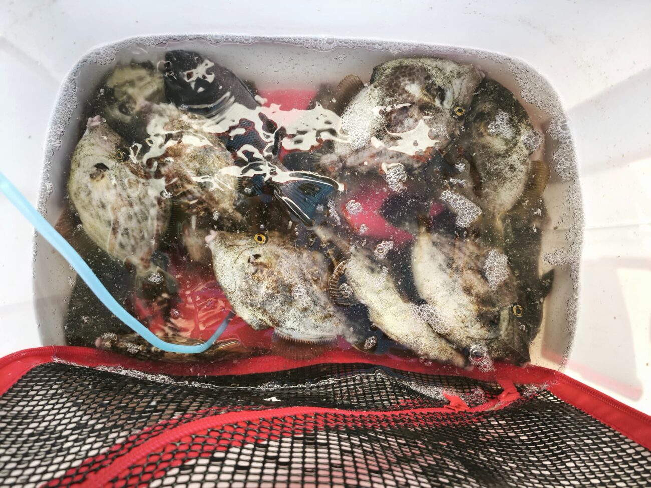 エサ釣りでカワハギ狙いに変えて、20~25cmほどのガシラが3匹と