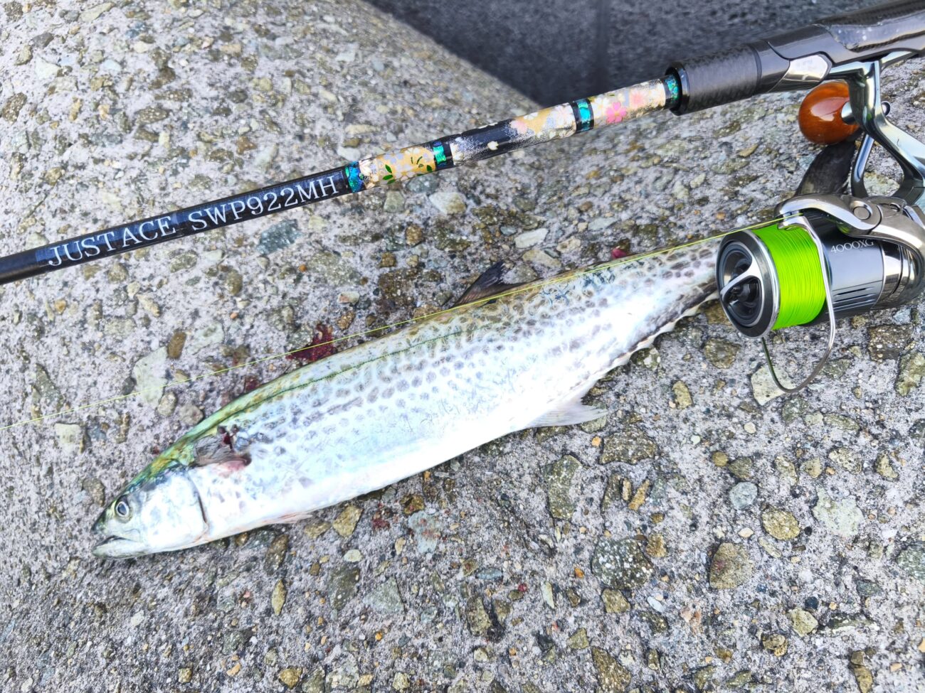 今回SWP922MHでショアジギングをしましたが、メタルジグ30g前後が一番使いやすかったです。